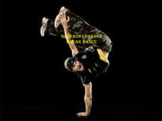 El break dance es un baile callejero asociado con géneros urbanos como el hip hop y el rap, que requiere mucho entrenamiento físico y abstinencia de vicios. El break dance se baila al ritmo de la música rap y hip hop, cuyas letras a menudo describen experiencias de la vida callejera. El rap es también un género urbano que surge de la calle y que busca contar las realidades y vivencias de quienes la habitan a través de la revolución artística.