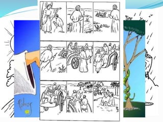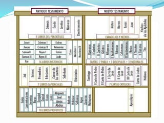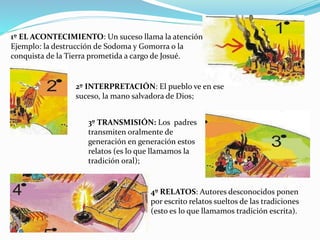El documento describe el proceso de cómo se escribió la Biblia. Comenzó con eventos históricos que fueron transmitidos oralmente de generación en generación. Luego, autores desconocidos escribieron relatos sueltos que fueron recopilados en libros por autores. Finalmente, todos los libros fueron ordenados y compilados para formar la Biblia tal como la conocemos hoy.