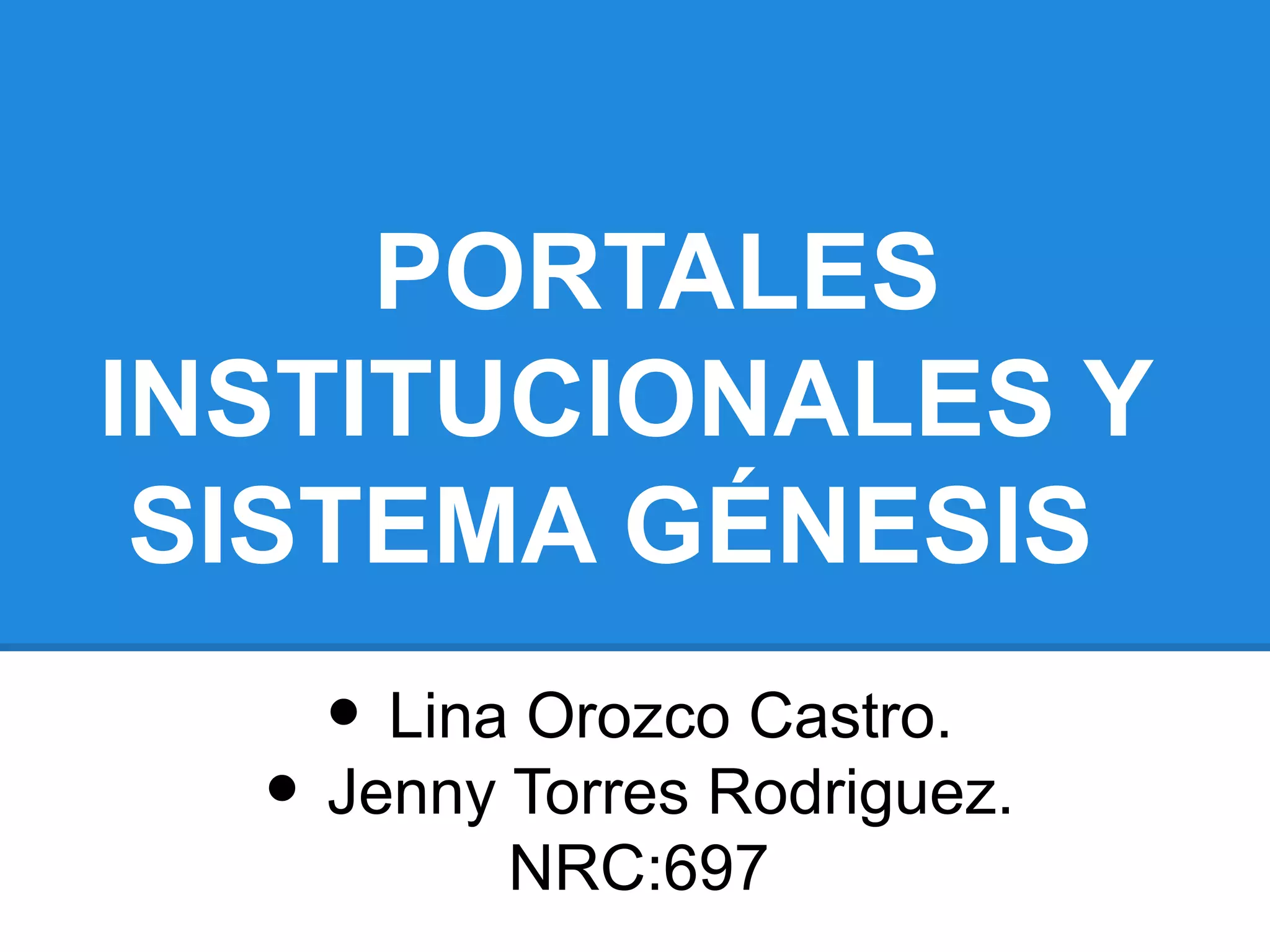 Este documento presenta información sobre los portales institucionales y el sistema Génesis de la Universidad Minuto de Dios. Explica los procesos para cambiar la clave de acceso a Génesis, visualizar el horario de clases y notas, e inscribir materias a través de la página web. También resume la misión y visión de la universidad y algunas de sus políticas sobre asistencia, cancelación de asignaturas y pérdida académica.
