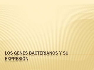 El documento describe los conceptos básicos de la genética bacteriana, incluyendo la estructura del genoma bacteriano, la transcripción, traducción y replicación del ADN, y los mecanismos de control de la expresión génica y reparación del ADN. También explica los diferentes tipos de mutaciones bacterianas y cómo estas pueden conferir ventajas de supervivencia, así como la capacidad de las bacterias para intercambiar ADN y genes entre sí.