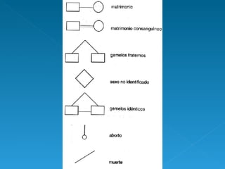 Este documento resume conceptos básicos de genética humana como fenotipo, genotipo, genes dominantes y recesivos, y ofrece ejemplos de rasgos hereditarios determinados por estos genes como la habilidad para detectar el sabor PTC, la forma de las orejas y los dedos. También explica los tipos de sangre ABO y el factor Rh, así como cómo se determinan mediante pruebas de aglutinación.