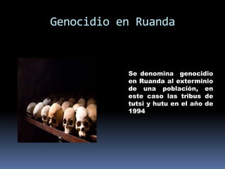 El genocidio en Ruanda comenzó en abril de 1994 tras el derribo del avión que transportaba a los presidentes de Ruanda y Burundi. Esto dio inicio a una masacre cruel entre las tribus hutu y tutsi que dejó cientos de miles de muertos. A pesar de las advertencias de la Cruz Roja sobre el alto número de víctimas, la comunidad internacional tardó en reconocer el genocidio y en reforzar la misión de paz de la ONU en el país. El Frente Patriótico Ruandés tomó el control de K