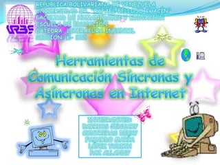 Este documento describe diferentes herramientas de comunicación síncronas y asíncronas en Internet y cómo se pueden usar en educación. Las herramientas síncronas discutidas incluyen chat, pizarras compartidas y redes sociales como Twitter y Facebook. Las herramientas asíncronas incluyen foros de discusión, correo electrónico, blogs y SlideShare. Se proporcionan ejemplos y actividades para cada herramienta.