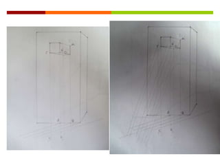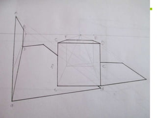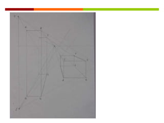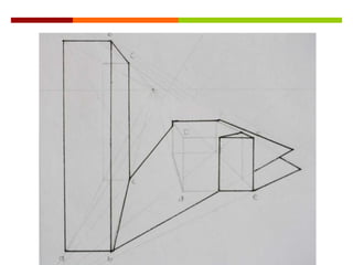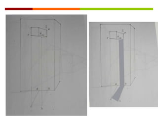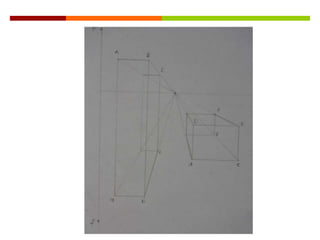 Este documento presenta diferentes tipos de representaciones de volúmenes geométricos en 2D y 3D, incluyendo planos de prismas y volúmenes con adiciones, así como giros de volúmenes con adiciones y planos interiores que muestran las características internas.