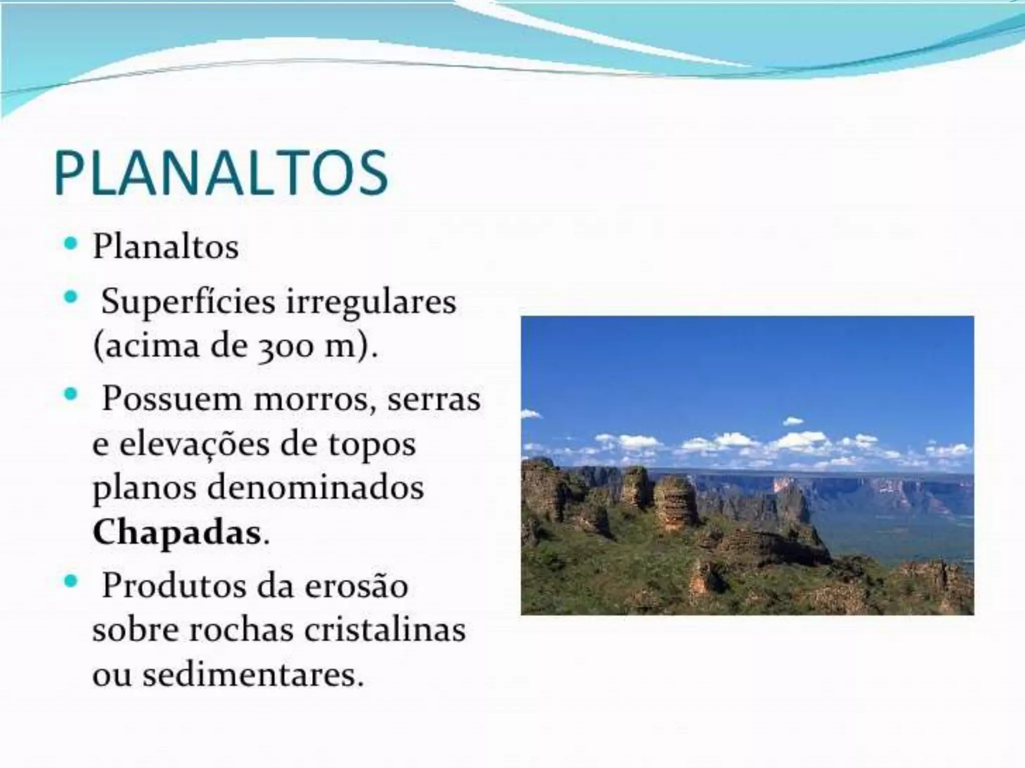 PLANALTOS, SERRAS, DEPRESSÕES E PLANÍCIE.