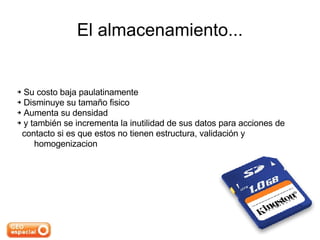 Este documento describe cómo GeoEspacial puede ayudar a normalizar, validar y georreferenciar datos de clientes para que sean más útiles y precisos. GeoEspacial puede procesar archivos de forma por lotes o en línea para limpiar y estructurar datos como direcciones, lo que permite contactar a clientes de manera más efectiva y descubrir nuevas oportunidades a través de análisis espacial.