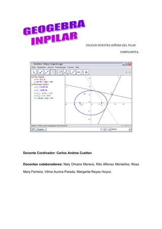 El documento presenta un análisis sobre el uso de Geogebra en la enseñanza de matemáticas, destacando su potencial para mejorar la comprensión y el interés de los estudiantes en geometría analítica. Además, argumenta que las nuevas tecnologías, aunque ampliamente disponibles, no son aprovechadas adecuadamente en el ámbito educativo. Se incluye un contexto histórico y cultural sobre el departamento de Norte de Santander en Colombia y su relación con las herramientas tecnológicas en la educación.