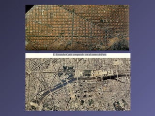 El documento describe la evolución histórica de las ciudades desde las primeras civilizaciones hasta la actualidad. Comienza con las primeras ciudades que surgieron hace 7000 años en Oriente Medio y continúa explicando los modelos de ciudades en la Antigüedad, Edad Media, Renacimiento, época industrial y moderna. También analiza ejemplos concretos de ciudades en diferentes periodos y culturas.