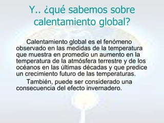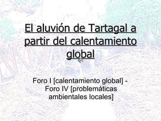 El documento describe los tres factores principales que contribuyeron al aluvión de Tartagal: el factor climático debido al calentamiento global, el factor antrópico como resultado de la deforestación y obras de infraestructura, y el factor geológico por la erosión de las sierras subandinas. Explica cada uno de estos factores y sus efectos en detalle.