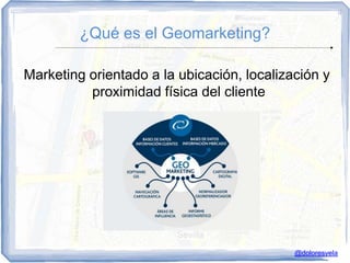 Este documento trata sobre geomarketing y marketing móvil. Explica conceptos como geomarketing, geolocalización y marketing de proximidad. Detalla herramientas como aplicaciones móviles, web optimizada para móviles, SMS, códigos QR y plataformas de geolocalización. Incluye casos exitosos de empresas como Carlsberg, Ikea, Redbox, Coca-Cola y Verizon que usaron estas técnicas. Finalmente, recomienda desarrollar una estrategia de marketing móvil teniendo en cuenta objetivos, el merc