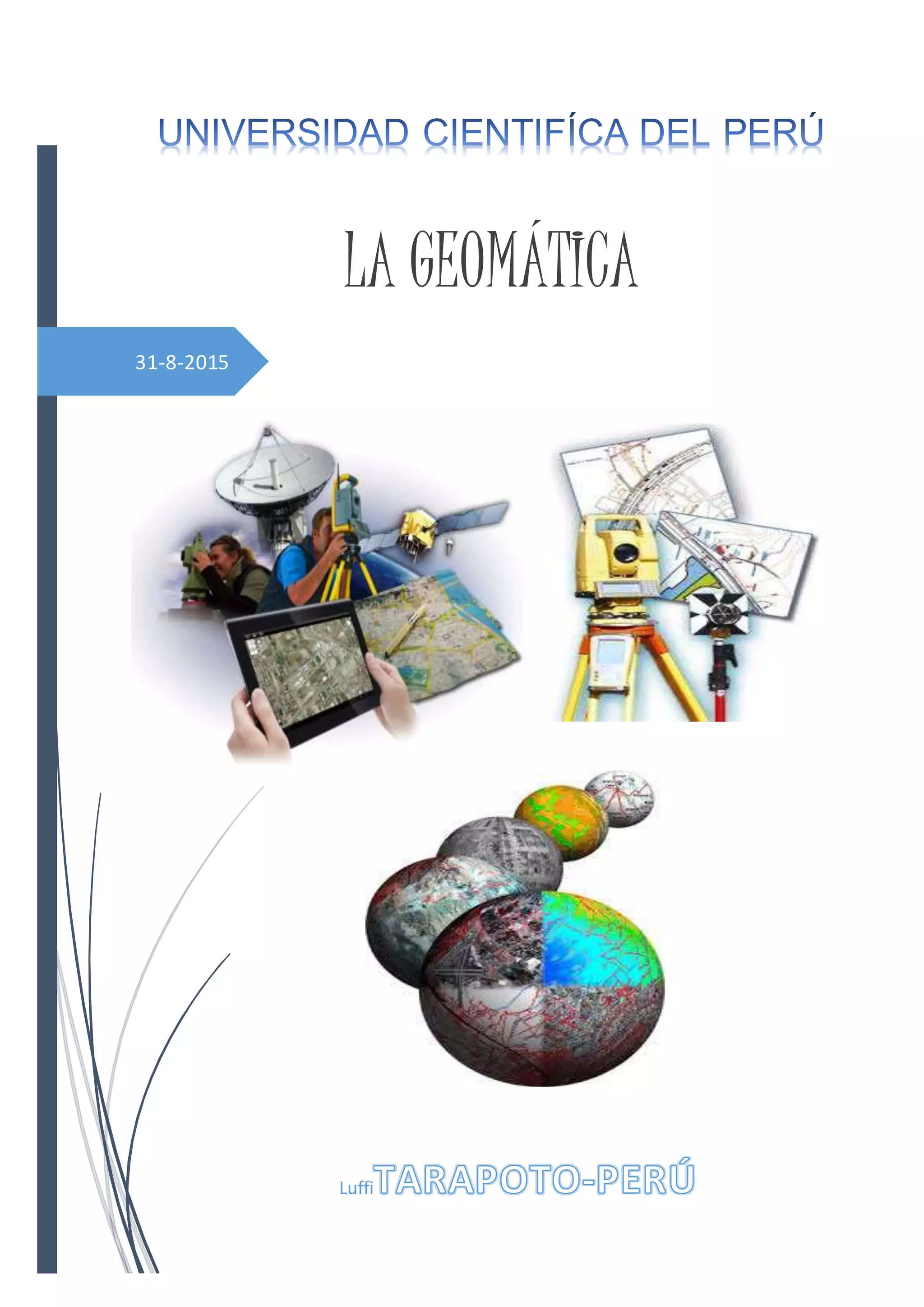 Este documento proporciona una introducción a la geomática. Define geomática como una técnica multidisciplinaria que involucra la adquisición, gestión y uso de información geoespacial a través de métodos como fotogrametría, teledetección, cartografía, SIG, geodesia y topografía. También resume brevemente el desarrollo histórico de la geomática y sus principales aplicaciones como la medición de la Tierra, gestión de información espacial y soporte a disciplinas como ingeniería, medio ambiente y planificación.