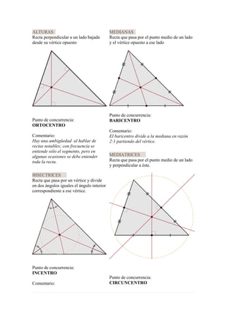 Las rectas notables de un triángulo son: