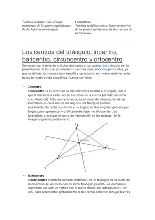 2) Mediana: recta que une un vértice con el punto medio del lado opuesto.