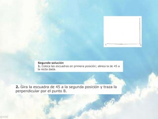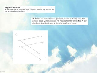 Este documento presenta las instrucciones para completar la Actividad de Aprendizaje 3 sobre ángulos, perpendiculares, proporcionalidad y empalmes de líneas en geometría. Se pide realizar bocetos de soluciones y luego limpiarlos en hojas de papel albanene sin errores. Estos deben escanearse y presentarse junto con explicaciones en una presentación de Slideshare para su evaluación.