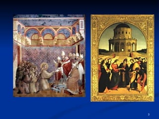 El documento describe la evolución de la geometría proyectiva desde su nacimiento en el Renacimiento para representar la perspectiva en pintura hasta su madurez como campo matemático en el siglo XIX. Los principales hitos incluyen el desarrollo de la perspectiva por artistas como Brunelleschi, Masaccio y Alberti; los estudios de Piero della Francesca, Leonardo da Vinci y Durero; y el establecimiento de los fundamentos axiomáticos por matemáticos como Desargues, Pascal, Poncelet, Klein y Peano.