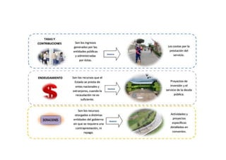 El documento habla sobre el presupuesto público y el sistema nacional de presupuesto. Explica que el presupuesto es el instrumento de gestión del Estado para lograr resultados a favor de la población a través de la prestación de servicios. También describe los principios del sistema nacional de presupuesto, la estructura del presupuesto del Estado, y define conceptos como pliego presupuestal y unidad ejecutora.