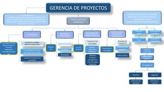 La gerencia de proyectos es la disciplina de organizar y administrar los recursos para completar un proyecto dentro del alcance, tiempo y costo planteados inicialmente. Un proyecto tiene una fecha de inicio pero la fecha de finalización depende de cumplir los objetivos propuestos o ser cancelado. Un proyecto se desarrolla de forma gradual mediante resultados, servicios o productos, lo que permite controlar las actividades, detectar errores temprano y mejorar el proyecto. Cada proyecto requiere estar enmarcado dentro de un contexto controlado que br