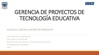Este documento describe los conceptos básicos de la gerencia de proyectos de tecnología educativa. Explica que la gerencia de proyectos consiste en organizar y administrar los recursos de un proyecto controlando los costos, el alcance, el tiempo y manteniendo una estructura organizada a través de su ciclo de vida. También requiere la gestión de finanzas, compras, contratos, tecnologías de la información y más. El director del proyecto planea, hace, revisa y actúa para garantizar el éxito del pro