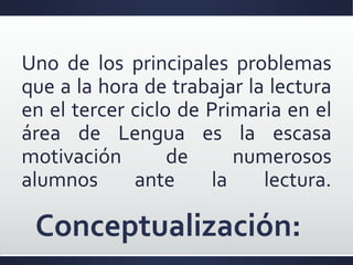 El documento describe un diplomado para docentes innovadores que busca motivar a los alumnos en la lectura en el tercer ciclo de primaria. Propone el aprendizaje a través de retos, el uso de las TIC y el trabajo colaborativo para ayudar a los alumnos a aprender de forma competencial. Los alumnos deben afrontar retos en grupo aplicando los contenidos y generan su propio blog para la evaluación.