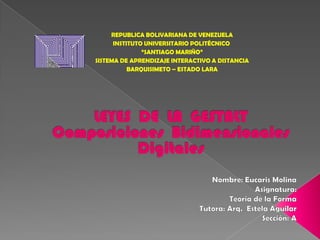 El documento resume las leyes fundamentales de la Gestalt, una escuela psicológica que estudia la percepción. Explica la Ley de la Figura-Fondo y la Ley de la Buena Forma o Pregnancia, la cual incluye subleyes como la de cierre, continuidad, semejanza, proximidad, simetría y comunidad. Además, ilustra cada ley con ejemplos que muestran cómo el cerebro tiende a completar formas y agrupar estímulos de manera significativa.