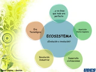 El documento describe la biodiversidad de Colombia y los desafíos ambientales a nivel mundial. Resalta que Colombia posee una gran biodiversidad y es el segundo país más biodiverso del mundo. También expone los problemas de contaminación global como la pérdida de especies y el acceso insuficiente al agua potable. Finalmente, presenta elementos de la gestión ambiental como la norma ISO 14000.