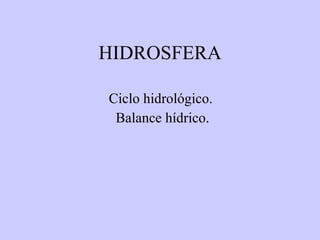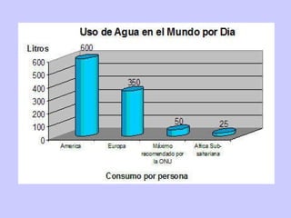 El documento trata sobre la gestión sostenible de los recursos hídricos y la biodiversidad en la Tierra. Explica el ciclo hidrológico y los parámetros para medir la calidad del agua. También describe las principales fuentes de contaminación del agua, como las aguas residuales urbanas e industriales y la agricultura y ganadería. Finalmente, analiza la pérdida de biodiversidad y sus causas, como la destrucción de hábitats y la contaminación.