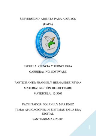 Este documento resume varios temas relacionados con aplicaciones de sistemas en la era digital, incluyendo logro de excelencia operativa a través de sistemas empresariales, software empresarial, cadena de suministro, relaciones con clientes, comercio electrónico, mercados digitales y bienes digitales. Explica conceptos como ERP, CRM, SFA y provee ejemplos de cómo estas aplicaciones mejoran la eficiencia y toma de decisiones en empresas.