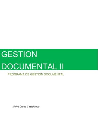 Este documento presenta un programa de gestión documental como instrumento archivístico. Explica las etapas del ciclo vital de los documentos y los procesos de un programa de gestión documental que se desarrollan en cada una de las etapas, con el objetivo de conocer cómo clasifican los archivos teniendo en cuenta el ciclo vital de los documentos. También busca identificar los valores que tienen los documentos en cada fase del ciclo vital.