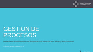 El documento se centra en la gestión de procesos dentro de la maestría en administración de empresas, abordando la necesidad del cambio en las organizaciones y la importancia de administrar eficazmente los procesos internos para satisfacer las demandas del cliente. Se discuten conceptos como la eficiencia, eficacia, y el análisis de valor agregado, además de introducir herramientas como planificación estratégica y diagramas de flujo. Se enfatiza que un enfoque basado en procesos es esencial para mejorar la productividad y competitividad de las empresas.