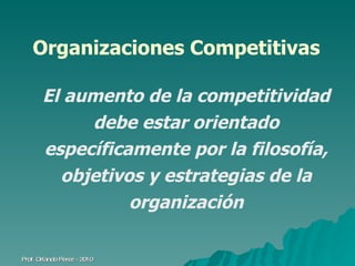El documento habla sobre la gestión estratégica y el control de organizaciones. Explica que la estrategia debe orientar el aumento de la competitividad de una organización. También describe los niveles de estrategia, el proceso de gestión estratégica, estrategias funcionales básicas y la dirección y control de gestión. Finalmente, analiza los tipos, características e información relacionada con el control de gestión.