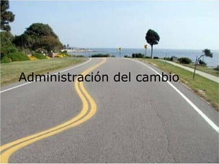 El documento trata sobre el tema del cambio en las organizaciones. Explica que el cambio significa pasar de un estado a otro y conlleva transformación, perturbación e interrupción. Además, señala que el cambio puede ser lento o rápido, y que existen fuerzas internas y externas que impulsan el cambio en las organizaciones. Finalmente, detalla algunas etapas clave del proceso de cambio como la planeación, comunicación e implementación.