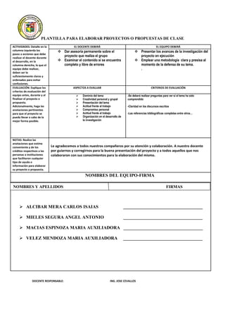 El documento describe un proyecto para fortalecer el proceso de enseñanza-aprendizaje de cálculo diferencial mediante un software en MatLab para estudiantes de segundo semestre de la Facultad de Ciencias Informáticas de la Universidad Técnica de Manabí. El proyecto tendrá una duración de cuatro meses y busca que los estudiantes mejoren su conocimiento sobre límites de funciones y derivadas a través de la aplicación práctica en MatLab.