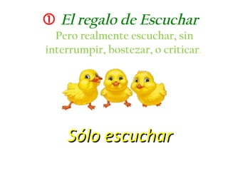 El documento describe 8 regalos que no cuestan nada: escuchar, demostrar cariño, sonreír, escribir notas, dar cumplidos, hacer favores, solicitar tiempo a solas, y mostrar gratitud. También enfatiza la importancia de pasar tiempo con amigos y familia, vivir la vida al máximo, y rodearse de cosas que ama uno.