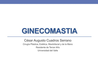 La ginecomastia es el crecimiento del tejido mamario en hombres, con causas que incluyen alteraciones hormonales y fármacos, y su manejo puede ser médico o quirúrgico dependiendo del grado y la causa. El diagnóstico requiere una evaluación física cuidadosa para descartar etiologías subyacentes y definir el tratamiento adecuado. La resolución puede ser espontánea en algunos casos, especialmente en adolescentes, pero también puede requerir intervenciones quirúrgicas específicas según la cantidad de tejido y la ptosis presente.