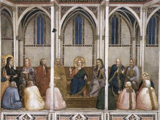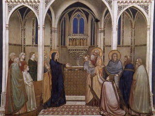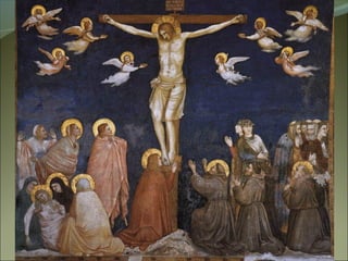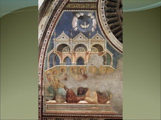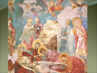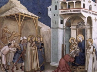 Giotto di Bondone (1267-1337) fue un pintor italiano considerado como el precursor del Renacimiento. Rompió con el estilo bizantino mediante el uso de la perspectiva y la tridimensionalidad en sus pinturas, sorprendiendo a su maestro Cimabue. Su obra maestra fue el ciclo de frescos de la Capilla de los Scrovegni en Padua (1303-1305).