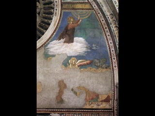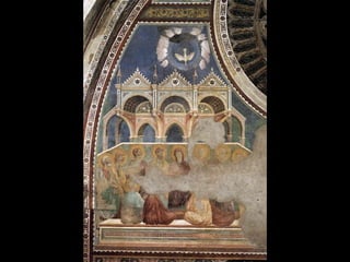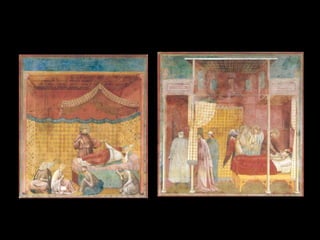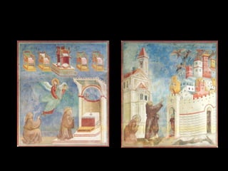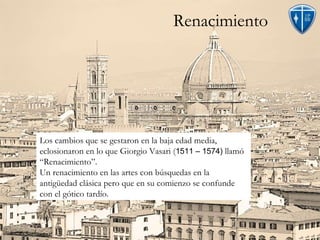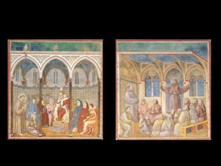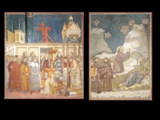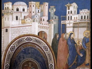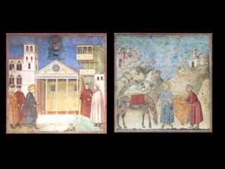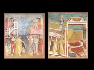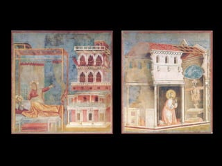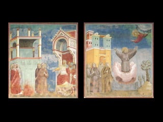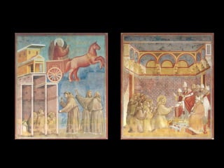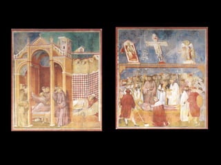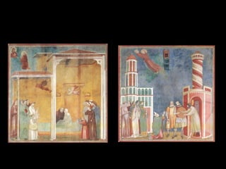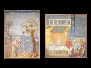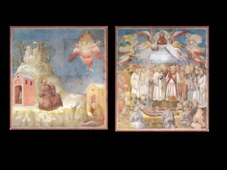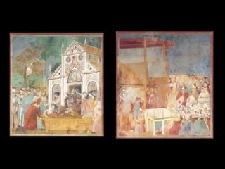 El Renacimiento fue un período de renacimiento en las artes que comenzó en el siglo XIV en las ciudades-estado del norte de Italia y las ciudades portuarias de los Países Bajos. Giotto di Bondone fue uno de los primeros artistas renacentistas, superando a su maestro Cimabue con pinturas que incorporaban perspectiva y tridimensionalidad. Algunas de sus obras maestras incluyen frescos bíblicos en la Capilla de los Scrovegni en Padua y una serie sobre la vida de San Francisco en