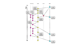 Git y GitHub son sistemas de control de versiones distribuidos. Git permite a los desarrolladores trabajar de forma paralela en ramas y compartir cambios a través de solicitudes de extracción. GitHub es una plataforma para alojar proyectos Git y revisar código de manera colaborativa. El documento explica conceptos clave como bifurcaciones, confirmaciones, solicitudes de extracción y fusiones, y cómo Git y GitHub permiten que los desarrolladores contribuyan y colaboren en proyectos de software de manera distribuida.