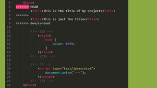 Este documento proporciona una guía sobre buenas prácticas de trabajo en equipo con Git. Explica flujos de trabajo como Github Flow y Git Flow que permiten a múltiples desarrolladores trabajar en un repositorio centralizado de manera colaborativa. También cubre temas como hacer commits regularmente, usar ramas para desarrollo paralelo, fusionar cambios, y resolver conflictos de fusión. El objetivo es establecer una metodología efectiva que facilite el desarrollo en equipo y minimice problemas.