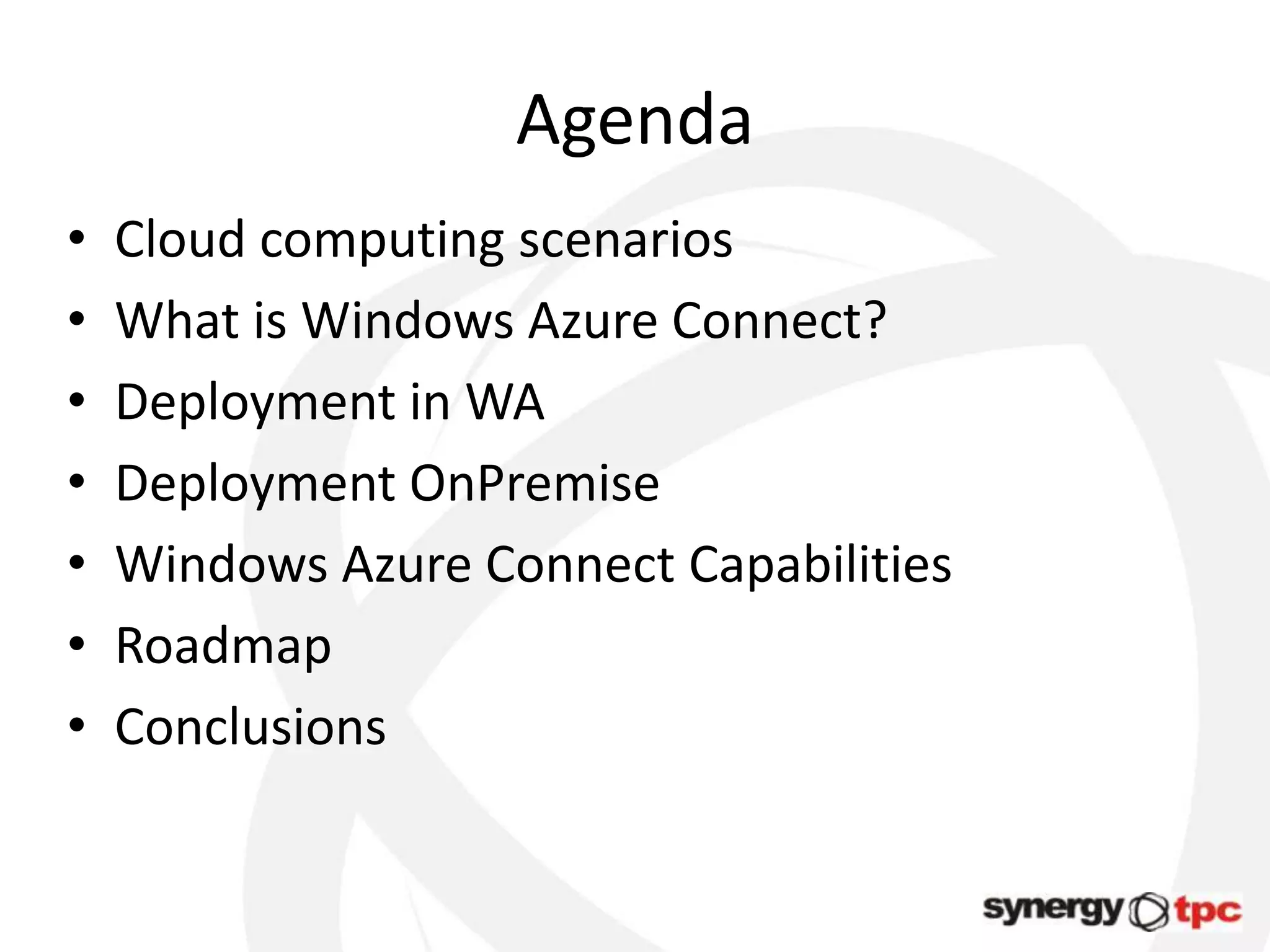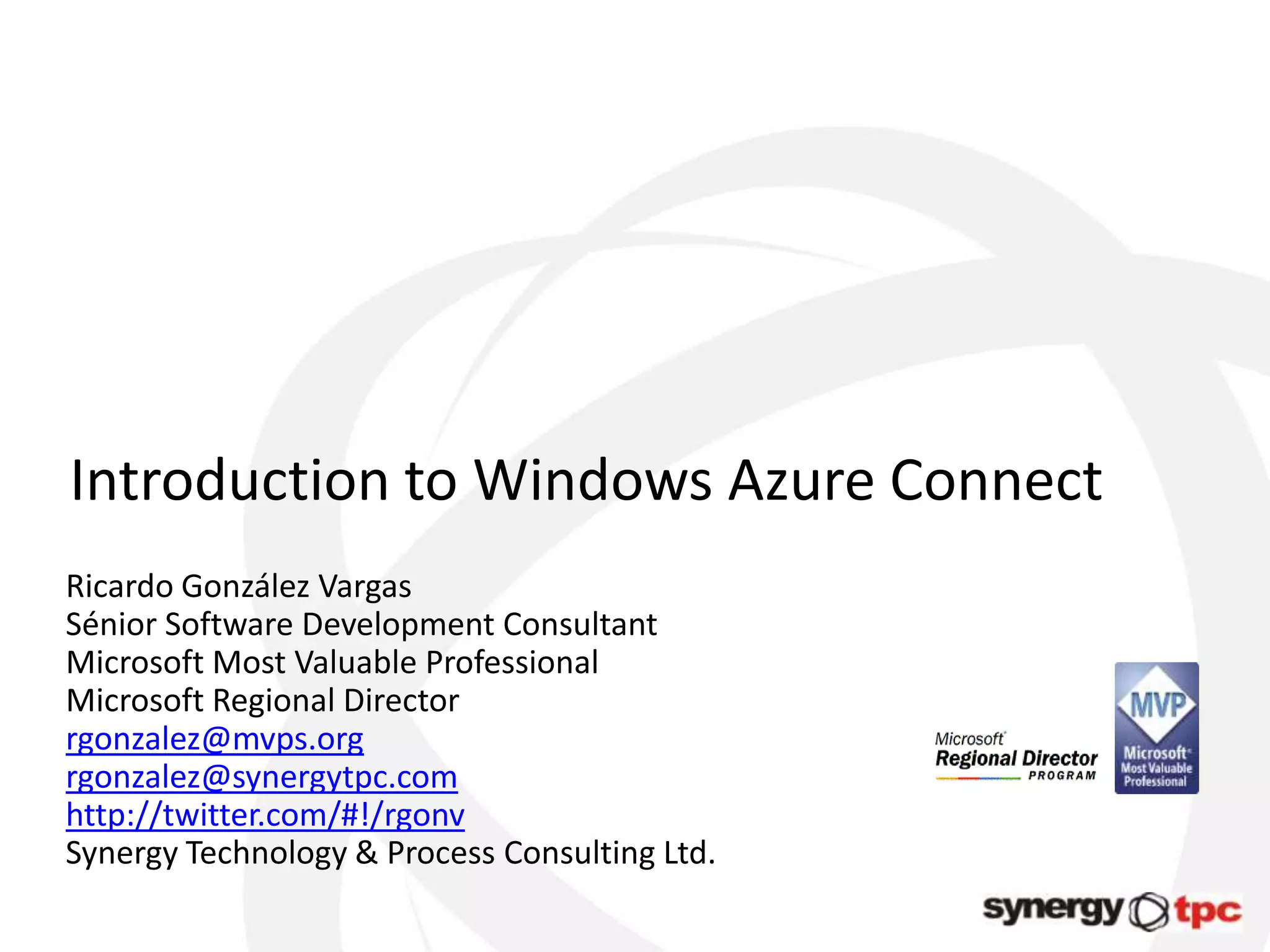 Windows Azure Connect permite una conexión segura entre la nube y plataformas on-premise, utilizando protocolos estándar de IP. Permite a roles de Windows Azure conectividad externa y a máquinas locales acceso a la nube. La configuración y administración de redes se realiza a través del portal de Windows Azure.