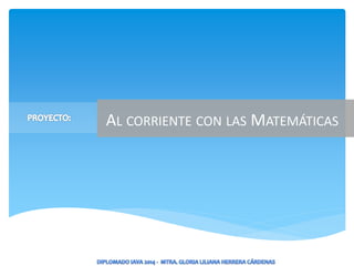 Este documento describe un proyecto titulado "Al corriente con las matemáticas" que tiene como objetivo proporcionar a los alumnos y padres de familia los planes de clase de matemáticas de forma anticipada a través de una página web, para que los alumnos que faltan a clase puedan ponerse al día. El documento incluye detalles sobre la escuela, los problemas que enfrentan los alumnos al faltar clase, y el contenido propuesto para la página web como cronogramas semanales, planes de clase