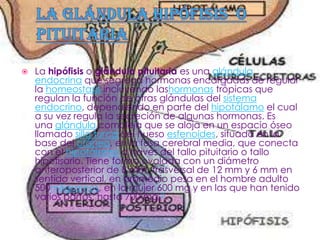 Las glándulas endocrinas principales incluyen la pituitaria, el hipotálamo, la glándula pineal, los testículos y ovarios, la tiroides, las suprarrenales, la paratiroides y el páncreas. Cada una segrega hormonas específicas que regulan funciones vitales como el metabolismo, la reproducción y el estrés.