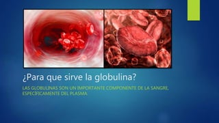 Las globulinas son un grupo de proteínas insolubles en agua, pero solubles en soluciones salinas, que desempeñan un papel crucial en la sangre. Se dividen en varias fracciones, incluyendo alfa, beta y gamma, cada una con funciones específicas como el transporte de hemo y la respuesta inmunitaria. Las gammapatías son trastornos relacionados con niveles elevados de gammaglobulinas en la sangre.