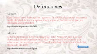 El documento aborda la música medieval, que se divide en dos periodos principales: el románico y el gótico, y se caracteriza por el canto gregoriano y la música profana. Destaca la importancia de los trovadores y troveros como poetas músicos que exploraban temas humanos como el amor y la guerra. Además, menciona diversos instrumentos como la dulzaina, el arpa y el organistrum, y los principales exponentes de este género musical.