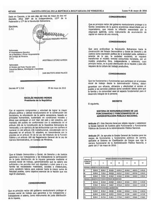 El documento resume varias resoluciones y decretos de diferentes ministerios del gobierno venezolano. Se nombran nuevos viceministros en el Ministerio de Industrias Básicas. También se establecen nuevos sistemas de remuneración para funcionarios y obreros del gobierno. Se designan nuevos presidentes en empresas estatales como Maderas del Orinoco y SIDOR. Finalmente, se realizan cambios en cargos directivos en el Ministerio de Agricultura y en una empresa mixta ruso-venezolana.