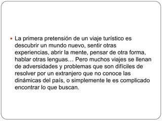 Go Away es una empresa turística colombiana que pretende crear una experiencia inigualable para turistas extranjeros visitando el país. La empresa asignará guías a cada turista para descubrir sus expectativas y crear un plan de actividades flexible. Go Away también pretende resolver cualquier problema que pueda surgir para que los clientes no tengan ninguna queja. La empresa busca convertirse en líder del mercado turístico colombiano y establecer alianzas con otras empresas del sector.
