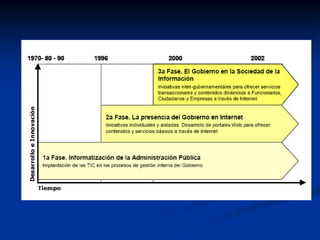 Este documento presenta un temario sobre gobierno electrónico y gestión pública. Aborda conceptos básicos como gobierno electrónico, sociedad de la información y tecnologías de la información y comunicaciones. Explica el uso de las TIC en el sector público y los beneficios del gobierno electrónico como la transparencia, eficiencia y acceso. Además, describe los componentes clave del gobierno electrónico como servicios electrónicos, gerencia electrónica y democracia electrónica.