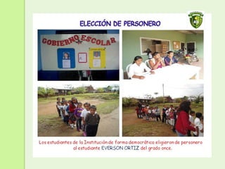Este documento describe el gobierno escolar de la Institución Educativa Las Mercedes. Establece que el gobierno escolar permite la participación democrática de la comunidad educativa en la toma de decisiones. Describe las diferentes organizaciones que lo conforman como el Consejo Directivo, el Rector, el Consejo Académico y el Personero Estudiantil. También establece los mecanismos para la elección democrática de los representantes estudiantiles a través de procesos de inscripción, campaña y votación.
