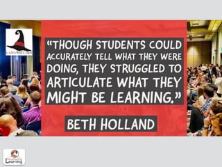 Este documento trata sobre la importancia de documentar el aprendizaje. En él, se discuten diferentes tipos de documentación como evidencia del aprendizaje, incluyendo capturas de pantalla, videos, fotos y reflexiones escritas. También se explican los beneficios de documentar el proceso de aprendizaje a través del tiempo, así como hacer visible el pensamiento y la metacognición. Finalmente, se enfatiza que la documentación del aprendizaje es fundamental para evaluar el progreso y compartir experiencias de aprendizaje con otros.