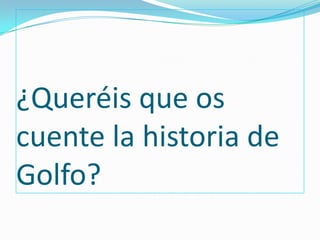 El documento habla sobre la mascota Golfo, un perro mezcla de Shih Tzu y Fox Terrier. Golfo nació en Benicarló en 2010 y fue comprado durante unas vacaciones en la playa y llevado a Zaragoza, para sorpresa de la madre. Golfo tiene su cartilla de vacunación y recibe cuidados regulares como baños cada dos semanas y cortes de pelo dos o tres veces al año.