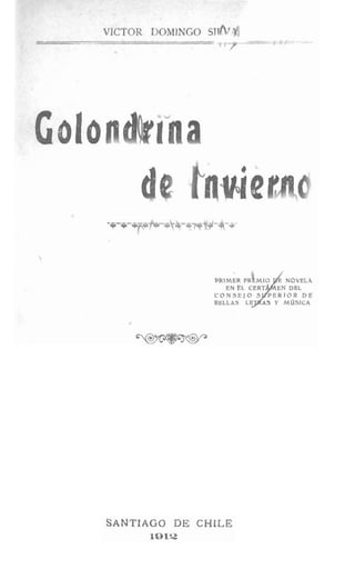 El documento describe una escena en una casa de campo en Chile. Los hermanos José Antonio y Anita conversan en el corredor mientras José Antonio lee el periódico. Se menciona que la familia del senador Ocampo ha llegado de visita a la vecina hacienda de Joaquín. José Antonio se va a trabajar en el campo, dejando a Anita sola con sus pensamientos melancólicos. El documento proporciona antecedentes sobre la vida de Anita y la reciente muerte de su padre.